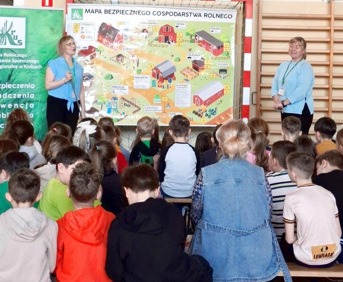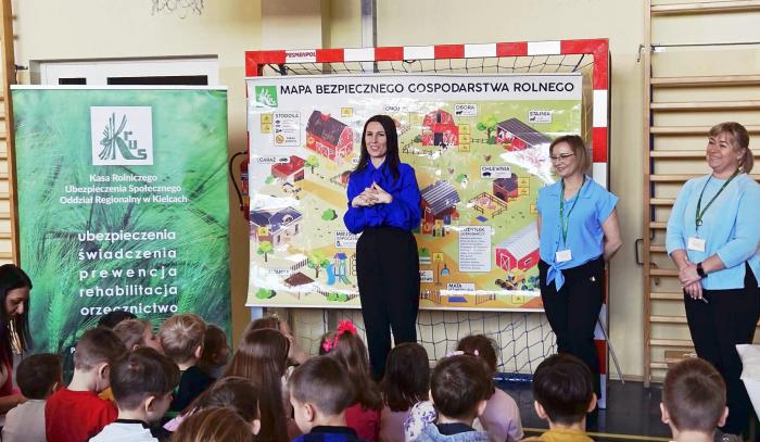 Było to wyjątkowe spotkanie edukacyjne dla najmłodszych uczniów z oddziału zerowego oraz klas I-III. Na zaproszenie Agnieszki Nowackiej, dyrektor SP w Królewcu przybyły Anita Dąbrowska i Bożena Kowalska z terenowego oddziału KRUS w Końskich.
