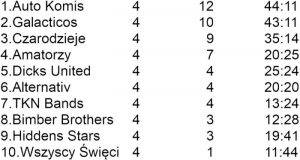 Najlepsi strzelcy : 16 - Sutowicz (Auto Komis); 12 - Pilarski (Hidden), Dutkiewicz (Galacticos); 10 - Kijewski, Mazur (Galacticos), Rudnik (Auto Komis); 9 - Milcarz (Czarodzieje); 8 - Pera (Czarodzieje), Franczyk (Alternativ); 7 - Bednarz (Wszyscy Święci), Baczewski (Dicks United); 6 - D. Zych (Auto Komis), Gonerka (Dicks United), Adamus (Czarodzieje), K. Stępień (Auto Komis).