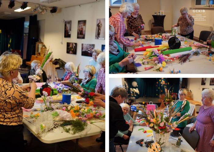 Podczas cotygodniowych Spotkań Stolikowych, prowadzonych przez nieformalną grupę „Klub Seniorek”, Panie z pasją i zaangażowaniem tworzyły piękne palmy wielkanocne z krepiny i darów natury.