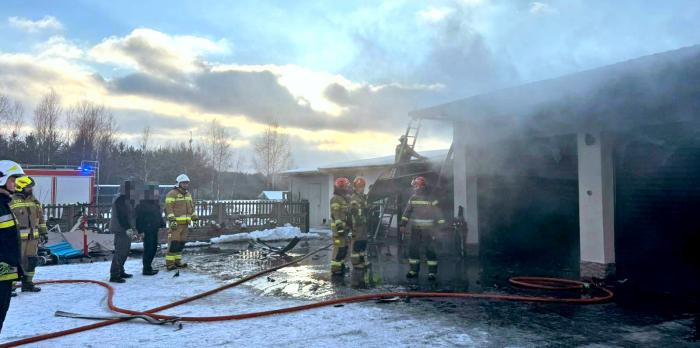 W budynku znajdował się sprzęt warsztatowy oraz elementy instalacji fotowoltaicznej. Z ogniem walczyło niemal 30 strażaków z PSP i ochotników OSP. Działania ratownicze prowadzono przy temperaturze -14 stopni C.