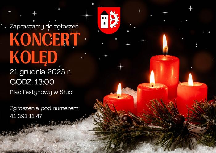 - Zapraszamy do zgłoszeń na koncert kolęd! Już 21 grudnia 2025 r. o godz. 13.00 spotykamy się na placu festynowym w Słupi, aby wspólnie wprowadzić się w świąteczny nastrój. Chcesz wystąpić podczas wydarzenia? Zadzwoń: 41 391 11 47. Do zobaczenia - zapraszają organizatorzy.
