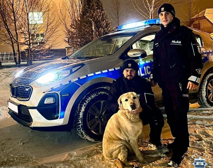 W niedzielę, 1 stycznia 2026 roku nad ranem dyżurny z Komendy Powiatowej Policji w Końskich otrzymał zgłoszenie, że w rejonie miejscowości Miedzierza, przy drodze krajowej numer 74, błąka się bezpański pies. Z uwagi na natężenie ruchu oraz panujący mróz, zdrowie i życie psa było zagrożone.