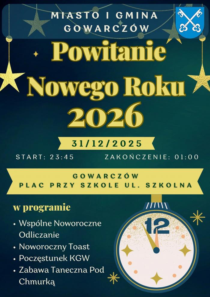 Burmistrz Miasta i Gminy Gowarczów serdecznie zaprasza mieszkańców na kolejne wspólne Powitanie Nowego Roku 2026.