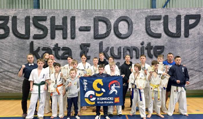 - Złote krążki do Końskich przywieźli Mateusz Gosek i Adam Sielski. Na drugim stopniu podium stanęli i srebrne medale otrzymali: Maja Strzemecka, Adam Gosek, Dominik Kot, Mikołaj Jerczyński, Wiktor Piekarski i Izabela Kamińska. Brązowe medale wywalczyli Natalia Kot, Fabian Jerczyński oraz Isabelle Bhatti. W turnieju wystartowali również Krzysztof Garbacz, Mieszko Michalski, Franciszek Gosek, Marcelina Sobczyk, Julian Sadliński, Kacper Kurp, Kacper Jabłoński, Nina Dziubińska, Paweł Kupis, Patryk Piekarski, Wit Starzyński. A Dominik Kot zadebiutował w konkurencji kata - informuje Mateusz Garbacz, trener Koneckiego KKK.