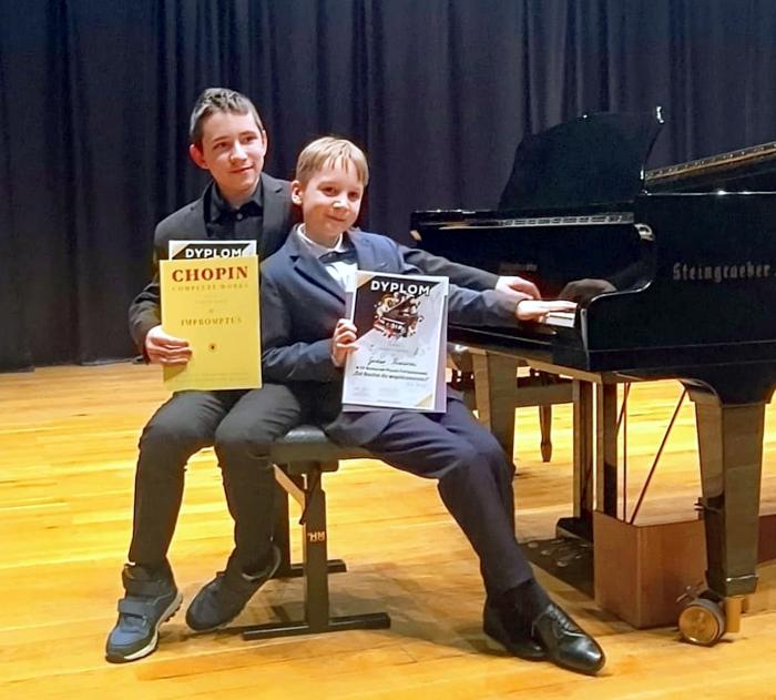 - Już prawie ferie, ale rzutem na taśmę dwóch młodych dżentelmenów z naszej szkoły pojechało sobie do Radomia. W odbywającym się tam jubileuszowym XX Konkursie Pianistycznym „Od Bacha do współczesności” każdy zajął sobie pierwsze miejsce w swoich grupach wiekowych!!! W konkursie wzięło udział 41 uczestników. Gustaw Piekarski i Franciszek Firkowski są uczniami pana Aureliusza Mendery. Całej ekipie serdecznie gratulujemy, czekamy na kolejne sukcesy, a wszystkim życzymy udanych ferii zimowych - cieszy się Małgorzata Kacperska, dyrektor PSM I stopnia w Końskich.