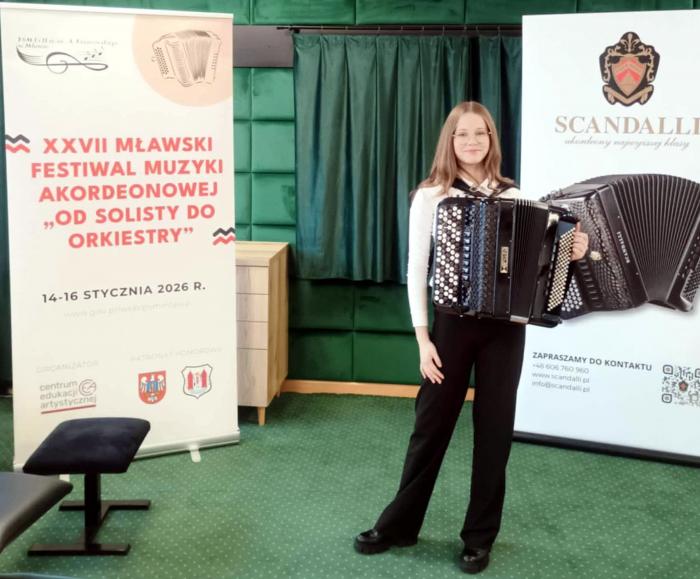 - Wiemy, że jesteśmy świetną szkołą, ale dziś przeszliśmy sami siebie. Natalia Stachera, uczennica klasy akordeonu pana Grzegorza Michty, zdobyła w Mławie trzecie miejsce! Jest to jeden z najważniejszych konkursów akordeonowych w Polsce, organizowany przez Centrum Edukacji Artystycznej i zawsze stoi na bardzo wysokim poziomie. Dlatego tym większe gratulacje i wyrazy szacunku dla Natalii i jej profesora - podsumowuje dyrektor Małgorzata Kacperska.