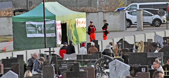 Nad bezpieczeństwem osób odwiedzających groby swoich bliskich czuwali ratownicy medyczni oraz ratownicy kwalifikowanej pierwszej pomocy z Koneckiego Oddziału Poszukiwawczo-Ratowniczego.