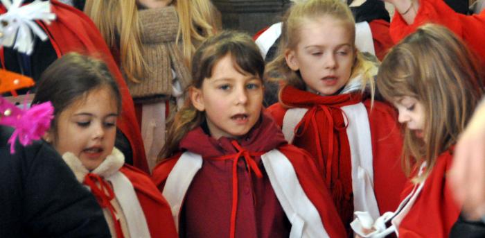 Dzieci prezentowały głównie żywiołowe kolędy. Wiadomo, że były te powszechnie znane, ale i te mniej znane konecczanom. By parafianie mogli dołączyć do dwudziestu wokalistów scholi, na ekranach wyświetlane były teksty. Musimy dodać, że każda msza święta, w której uczestniczą Mikołajki, jest inna piękniejsza, ożywiana przez dzieci.