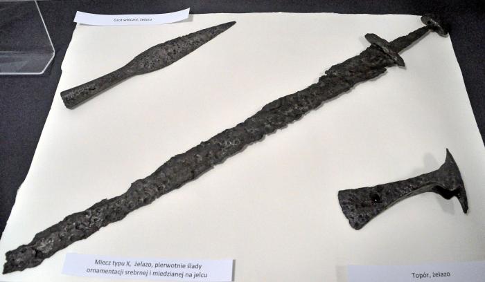 I co ważne, dwa miecze. Było to jedno z większych cmentarzysk odkrytych w tamtym czasie w Polsce, liczące (przed zniszczeniem części grobów) 168 grobów i prawdopodobnie kilkadziesiąt więcej, które uległy uszkodzeniu przed rozpoczęciem prac naukowych. W jednym z grobów odkryto szkielet wysokiego jak na epokę mężczyzny, który miał 178 cm wzrostu. Zaś miecz jakim się posługiwał, liczył 90 cm.