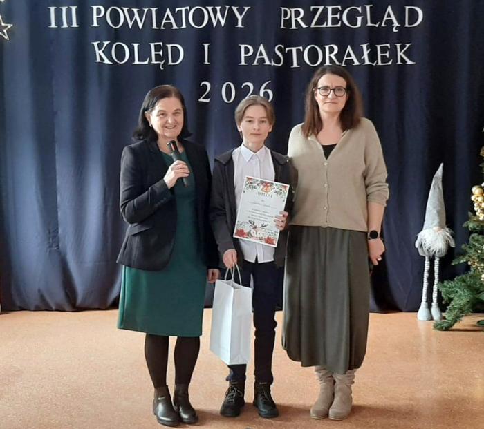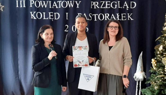 II miejsce: Sophie Ngembo-Ślifirska (Prywatna Szkoła Podstawowa w Końskich) - za wykonanie kolędy „Cicha noc”, III miejsce: Zuzanna Tomczyk (ZPO w Dziebałtowie) - za wykonanie utworu „W ten grudniowy dzień”.