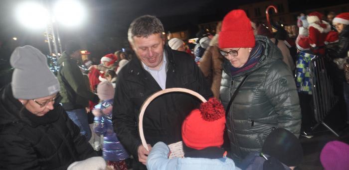 Goście rozdawali słodycze i fotografowali się ze wszystkimi chętnymi, zaś w częstowaniu słodyczami Mikołajowi pomagali burmistrz i jego zastępcy Krzysztof Jasiński i Marcin Zieliński.