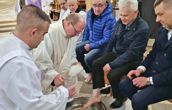 W koneckiej kolegiacie nogi 12 wiernym obmywa ks. kanonik Jacek Wieczorek. Na pamiątkę obmycia nóg swoim uczniom przez Chrystusa. Ten element ksiądz czyni to z wielką uwagą, oddaniem. To symbol pokory i służby, jaki pozostawił Jezus w czasie Ostatniej Wieczerzy.