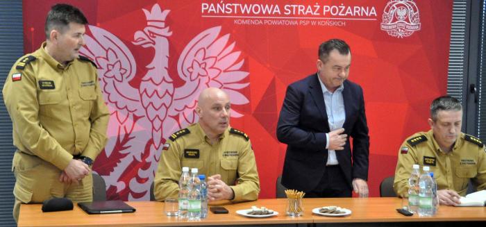 Bryg. Ryszard Stańczak, komendant powiatowy PSP w Końskich, przedstawił sprawozdanie z działalności strażaków PSP i OSP oraz ich współdziałania z innymi służbami w zakresie ratowania życia, zdrowia i mienia mieszkańców powiatu koneckiego.
