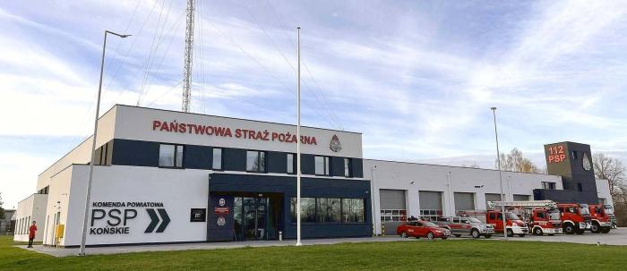 Nowy i nowoczesny obiekt, siedziba Komendy Powiatowej i Jednostki Ratowniczo-Gaśniczej Państwowej Straży Pożarnej, został od podstaw wybudowany na działce przy ul. Warszawskiej w Końskich. Wielką zaletą nowej strażnicy jest jej lokalizacja. Fakt zbudowania jej na obrzeżach miasta, ułatwia logistykę i działania ratunkowe koneckich służb.