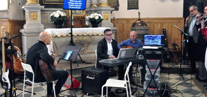 Po zakończeniu mszy świętej wspomniany zespół koncertował. Muzycy i wokaliści grali i śpiewali piosenki oraz pieśni z repertuaru, jaki przygotowywał ks. prof. Marek Jagodziński. Zawsze są na czasie, zawsze trwale związane z ludźmi, Kościołem, Panem Bogiem. Wraz z zespołem śpiewali wierni, którzy byli w kolegiacie.