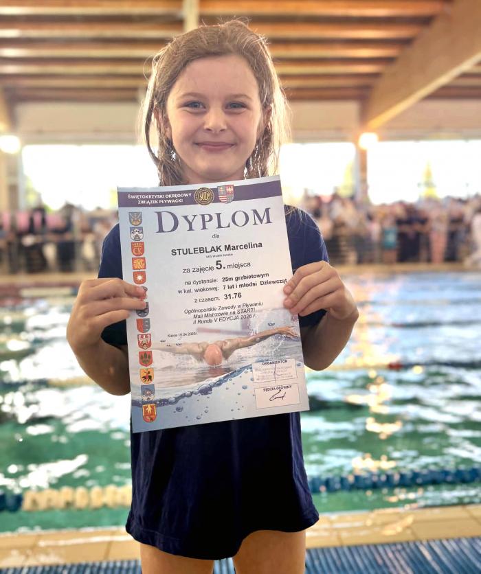 Marcelina Stuleblak - 3 miejsce na 25 m stylem klasycznym (7 lat i młodsi) oraz 5 miejsce na 25 m stylem grzbietowym,