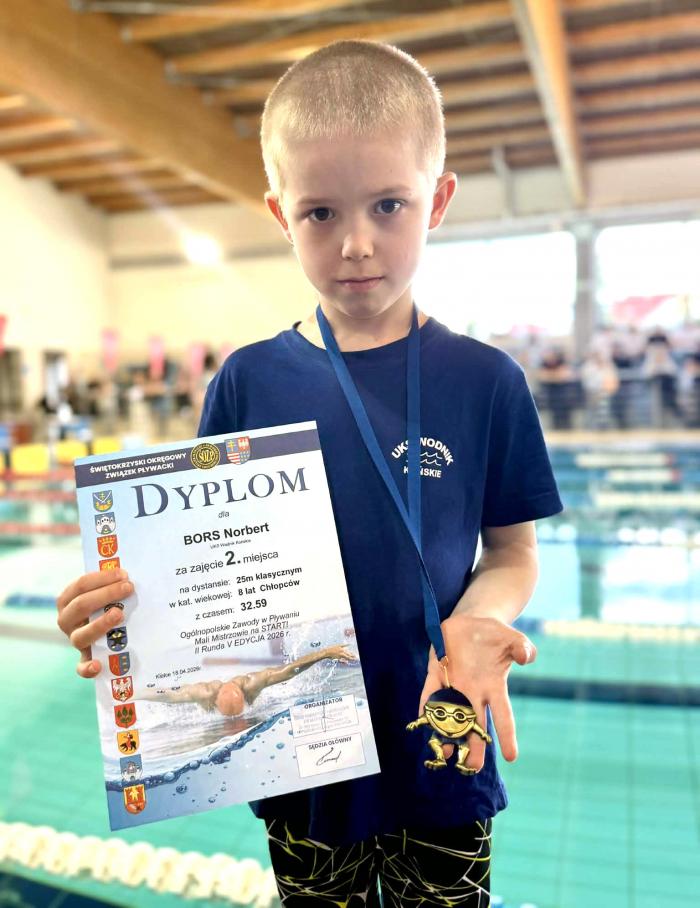Norbert Bors - 2 miejsce na 25 m stylem klasycznym oraz 2 miejsce na 25 m stylem motylkowym (8 lat),