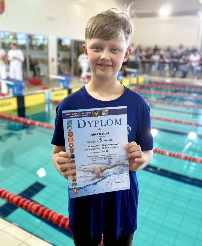 Marcel Maj - 5 miejsce na 50 m stylem grzbietowym (10 lat),