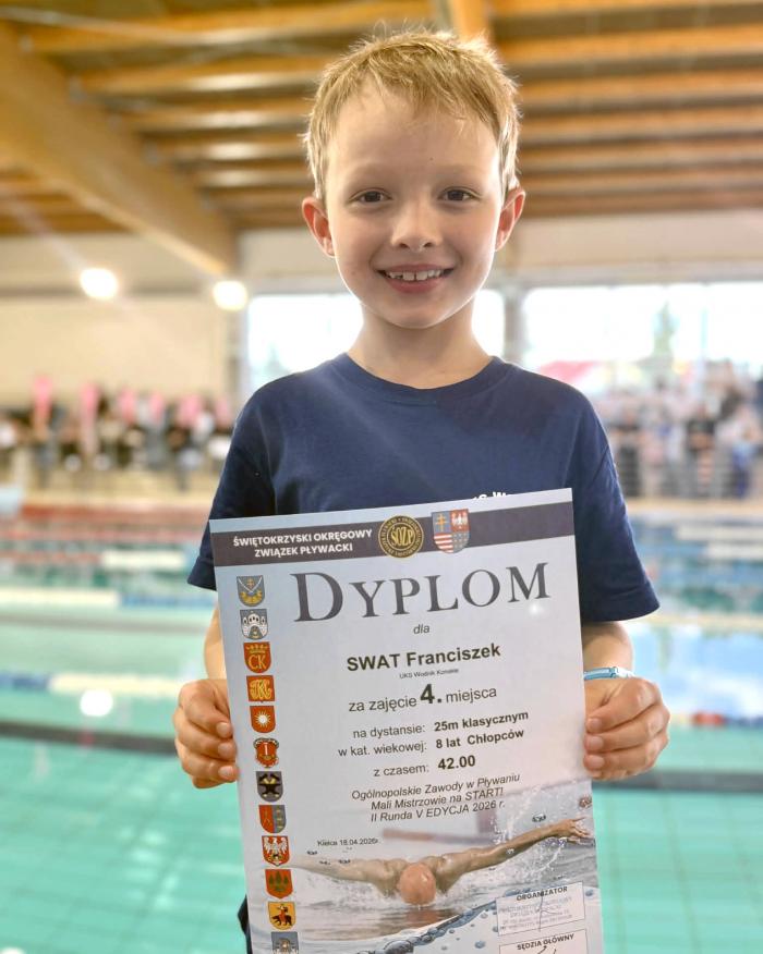 Franciszek Swat - 4 miejsce na 25 m stylem klasycznym (8 lat).