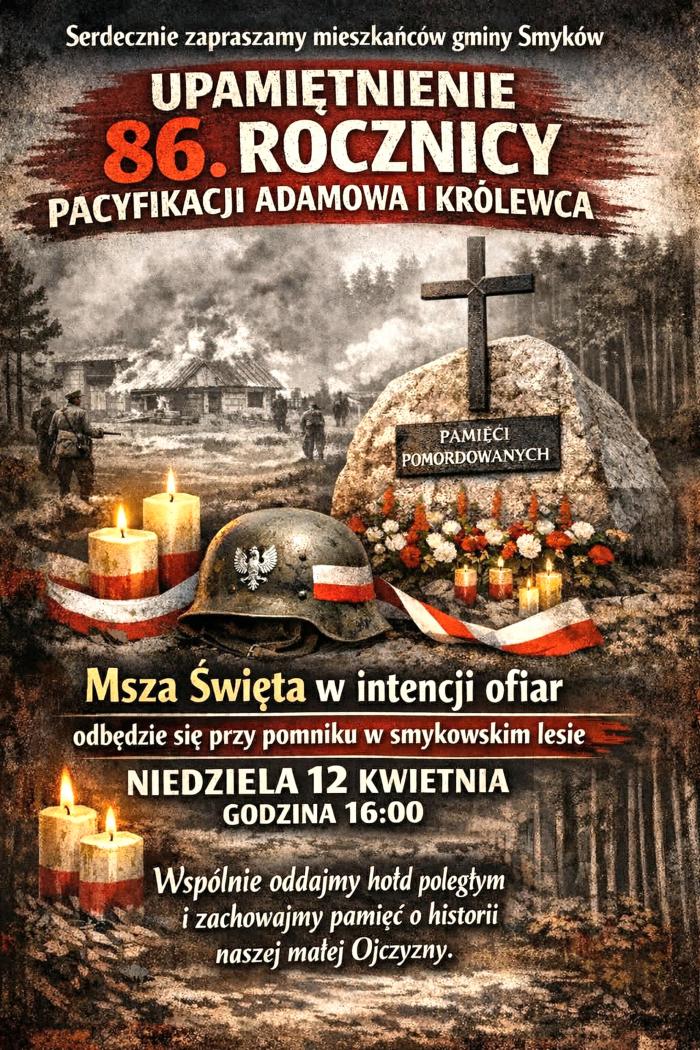 Pamięć o pomordowanych jest kultywowana, a mieszkańcy oraz delegacje składają kwiaty w miejscach pamięci w rocznicę tych tragicznych wydarzeń. Nie inaczej będzie w tym roku. Samorząd Gminy Smyków zaprasza na upamiętnienie 86. rocznicy pacyfikacji Adamowa i Królewca.