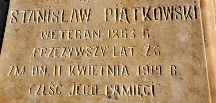Obok leży płyta Stanisława Piątkowskiego – weterana 1863 roku – oraz katakumba Jadwigi z Kalicińskich Malanowiczowej, uczestniczki powstania. Dalej znajduje się mogiła Stanisława Mietlińskiego, weterana powstania, urodzonego w 1835 roku, zmarłego w 1926. Wzdłuż głównej alejki spoczywają m.in. Marian Józef Szymański, Władysław Radwan i jego bratanek Jan.