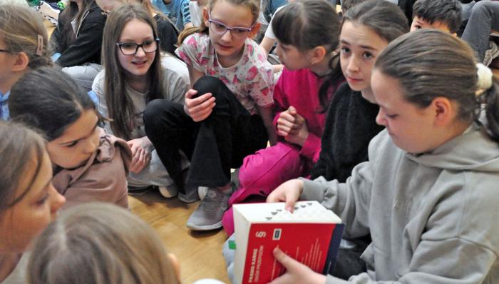 Spotkanie miało charakter interaktywny - dzieci chętnie zadawały pytania i mogły z bliska obejrzeć prawnicze księgi, kodeksy oraz togę, która wzbudziła największe zainteresowanie. Te opasłe księgi, jak określali je uczniowie dla nich zawierają przepisy prawa jakie wszystkich obowiązują. Oznaczone paragrafami numerami, w których można się pogubić.