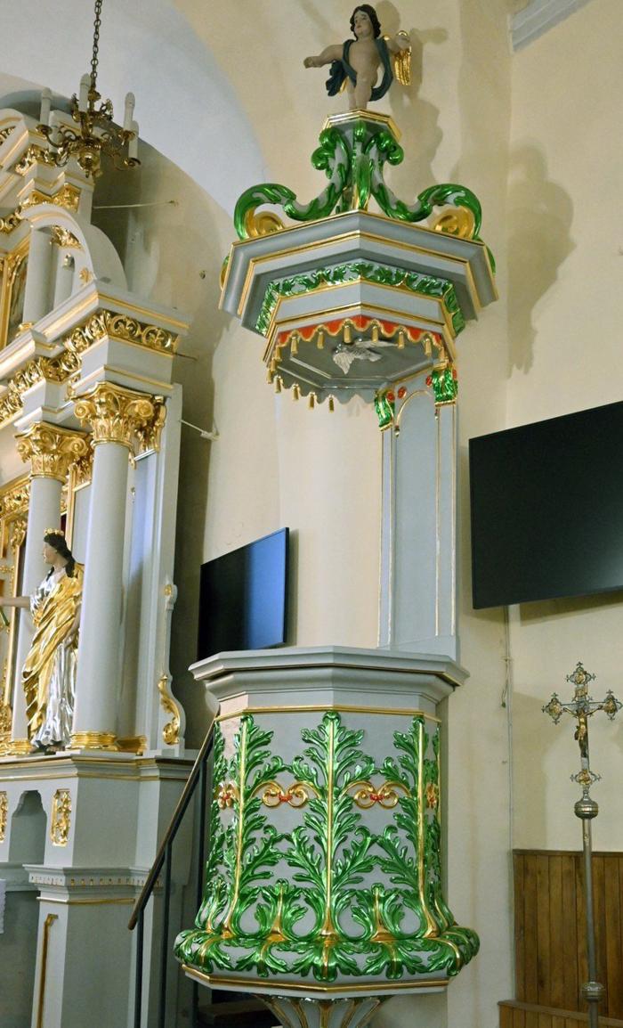 Ambona teraz jawi się jako przyciągający wzrok element wystroju. Malachitowa barwa ozdób przypominających elementy roślin na kazalnicy i daszku nad nią odróżnia całość od tego typu zabytków w innych kościołach. Jest niepowtarzalna.