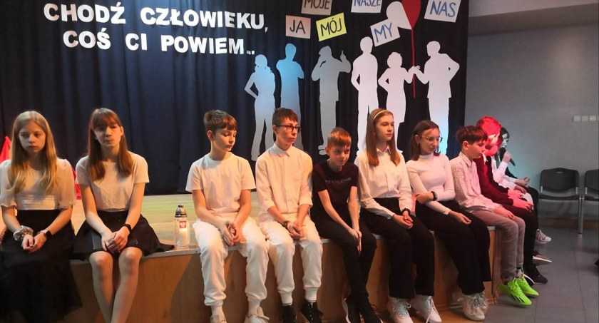 Na salę wprowadzono sztandary: szkoły i ŚZŻAK. Następnie wszyscy zaśpiewali, że "Jeszcze Polska nie zginęła..." Gości serdecznie powitał dyrektor szkoły Czesław Staciwa. Następnie uczniowie zaprezentowali okolicznościowy program artystyczny, o patriotycznym przesłaniu zatytułowany "Choć człowieku, coś ci powiem", który podkreślał waleczność bohaterów Armii Krajowej.