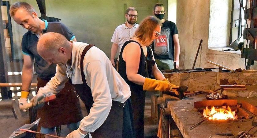 Grupa, która akurat brała udział w zajęciach, zachwycona była największym w Polsce kołem wodnym, które napędza wszelaką maszynerię fabryki. Turyści byli zadowoleni, że samodzielnie mogą uczestniczyć w życiu zabytkowego zakładu. Wykuwali sobie gwoździe, choć zakład w przeszłości produkował gwoździe cięte z blachy. Ale wcale im to nie przeszkadzało, że w nieco unowocześnionej technologii, na kowadle młotem odkuwali sobie gwoździe z kawałka żelaza rozgrzanego do czerwoności w ogniu.