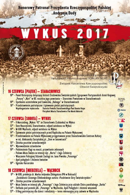 Od 16 do 18 czerwca br. w Starachowicach, Wykusie oraz Wąchocku odbędą się uroczystości związane z upamiętnieniem żołnierzy Armii Krajowej walczących pod komendą płk. Jana Piwnika ps. „Ponury” oraz mjr. Eugeniusza Kaszyńskiego ps. „Nurt”. Spotkania odbywają w czerwcu w najbliższy weekend 16.06 rocznicy śmierci „Ponurego”.