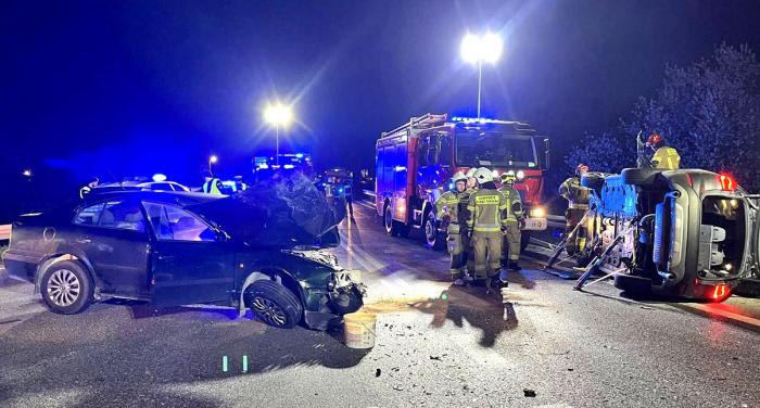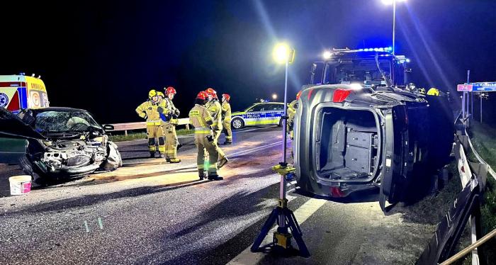 Do groźnie wyglądającej kolizji doszło w poniedziałek, 27 kwietnia 2026 roku, chwilę po godzinie 21 na krajowej trasie numer 74 w Jacentowie.