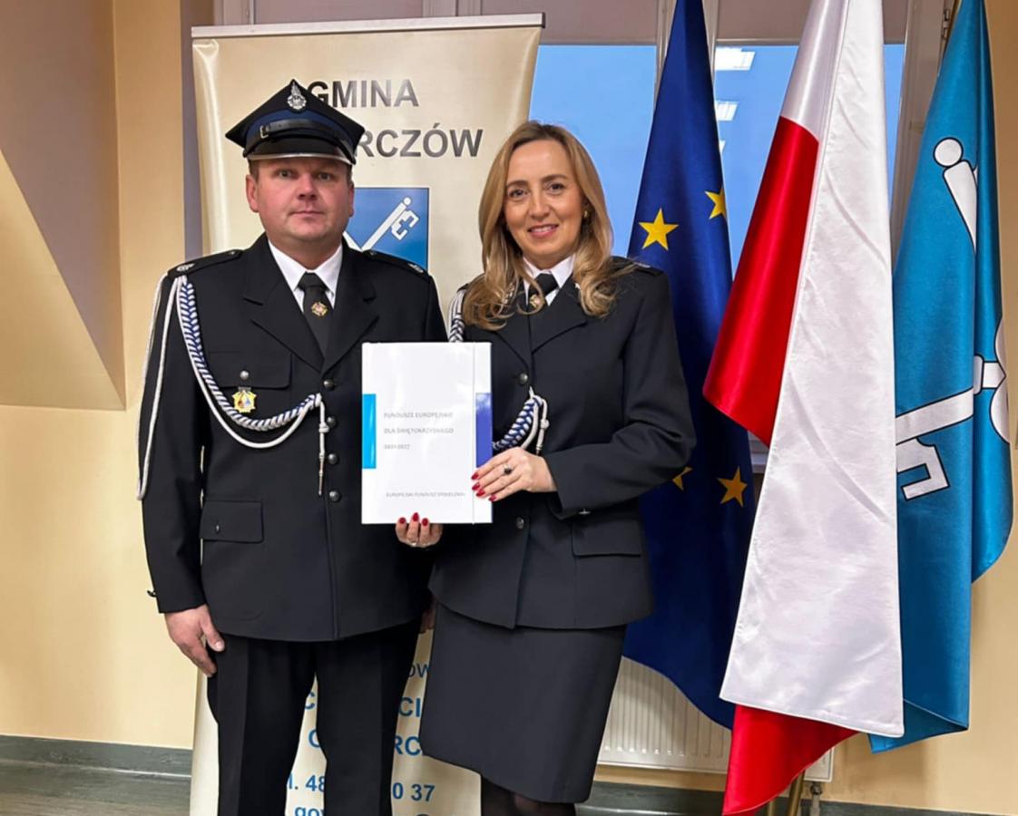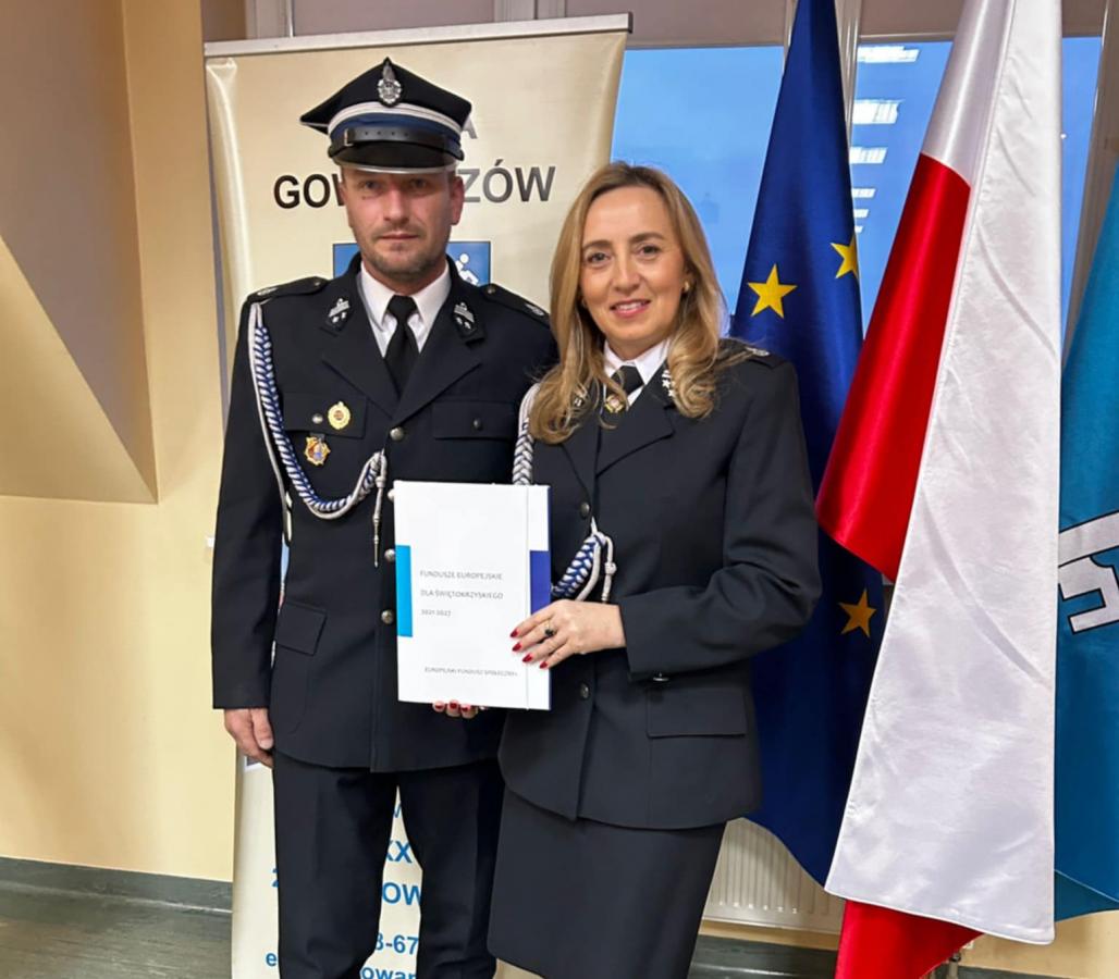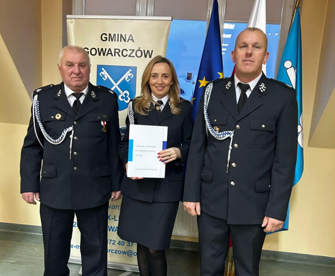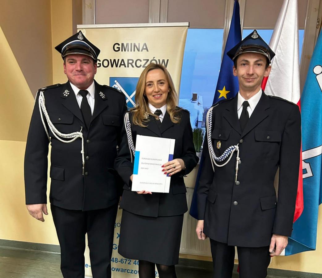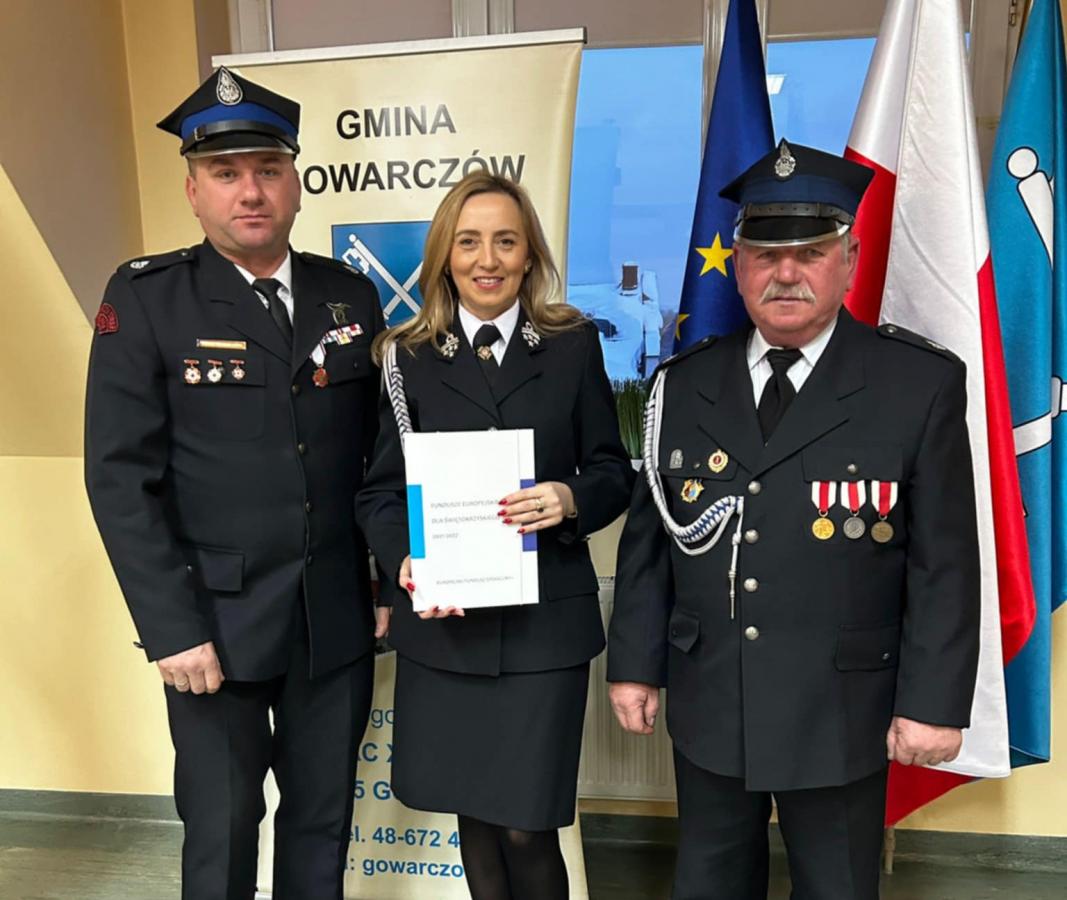 Jednostki OSP z gminy Gowarczów otrzymały dofinansowanie z Funduszy Europejskich na specjalistyczne szkolenia i zakup sprzętu. Projekt obejmuje kurs pierwszej pomocy, doskonalenie umiejętności ratowników oraz zakupy m.in. defibrylatora i stroju ochronnego. Joanna Dołowska, burmistrz Gowarczowa podkreśliła zaangażowanie prezesów OSP. Po rozdaniu certyfikatów, prezesi pozowali do zdjęcia z burmistrz. Na zdjęciach uwieczniono to ważne dla nich wydarzenie.