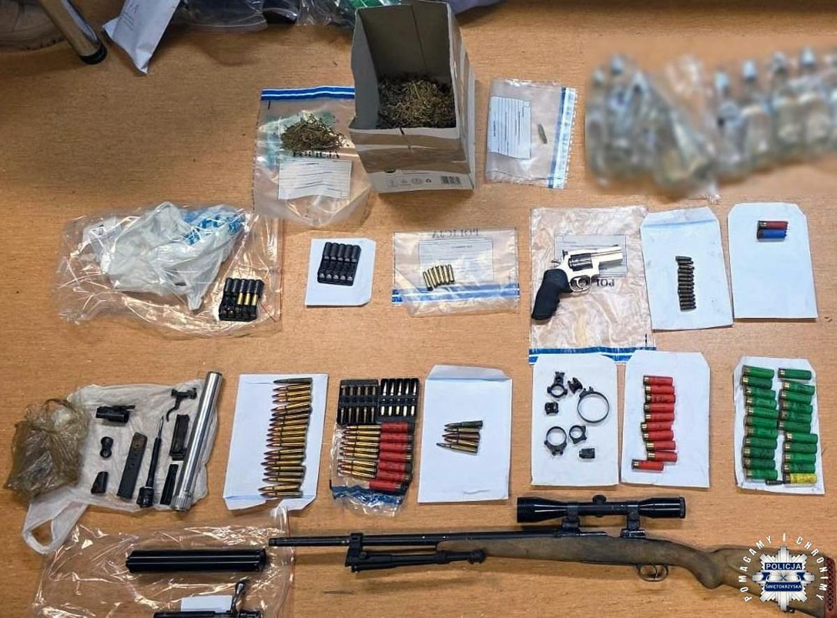 Na terenie gminy Smyków dwóch mieszkańców zostało zatrzymanych przez policję z Kielc. Znaleziono u nich broń, amunicję i narkotyki. Mężczyźni trafili do prokuratury, gdzie grozi im kara nawet do 8 lat więzienia. Policjanci natrafili na prawdziwą zbrojownię na prywatnej posesji 50-latka oraz znaleźli narkotyki u 33-latka. Oba przypadki są przedmiotem dochodzenia.