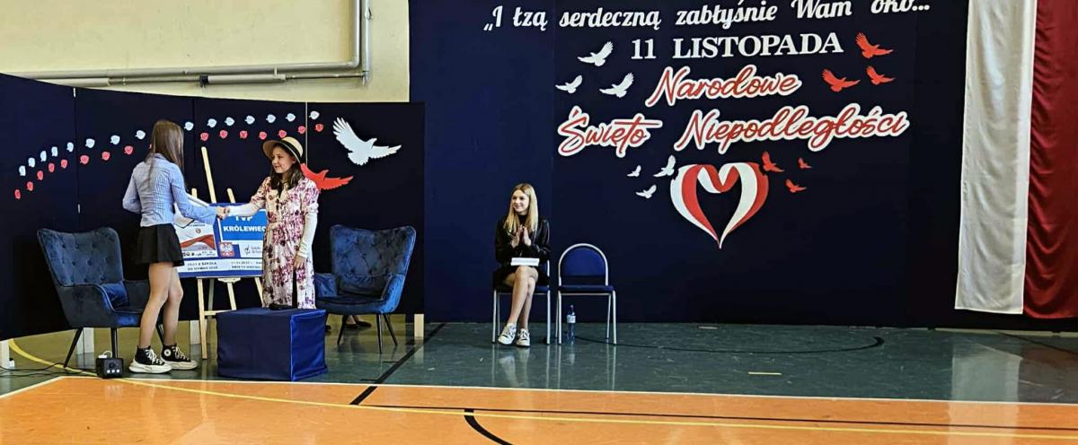 Narodowe Święto Niepodległości w Królewcu - galeria zdjęć z uroczystości, podczas której społeczność szkolna zebrała się, by uczcić to ważne święto. Przemówienia, hymn państwowy, recytacje patriotyczne, koncert pieśni, tańce i wręczenie nagród - wszystko to wyjątkowe momenty, które podkreśliły miłość do Ojczyzny. Pełne wzruszeń i patriotyzmu wydarzenie, które na długo pozostanie w pamięci uczestników. Gratulujemy laureatom konkursu i dziękujemy wszystkim za udział w obchodach tego święta