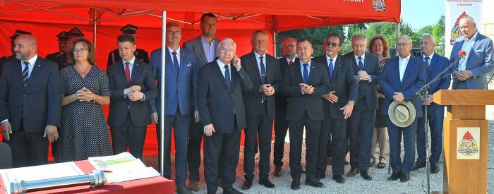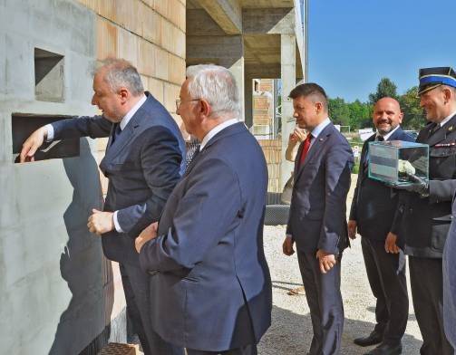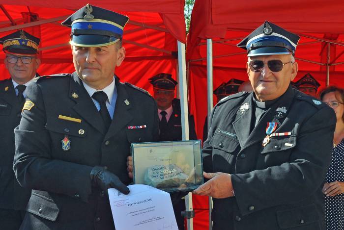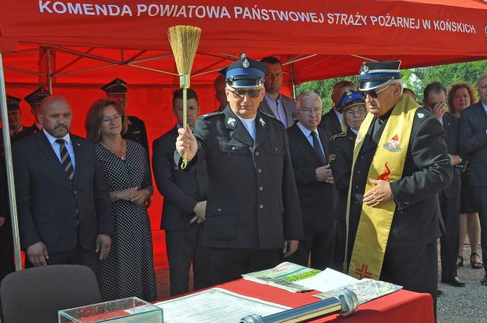 Kapelan przekazuje kamień węgielny koneckiemu komendantowi