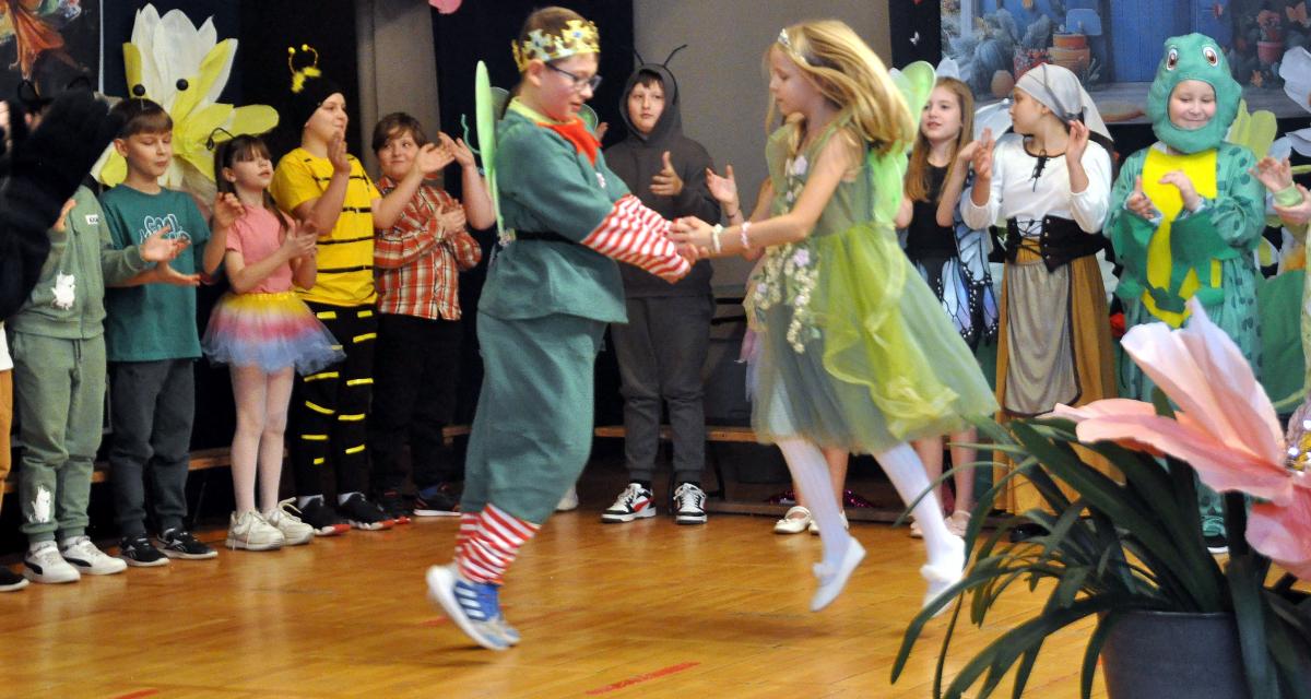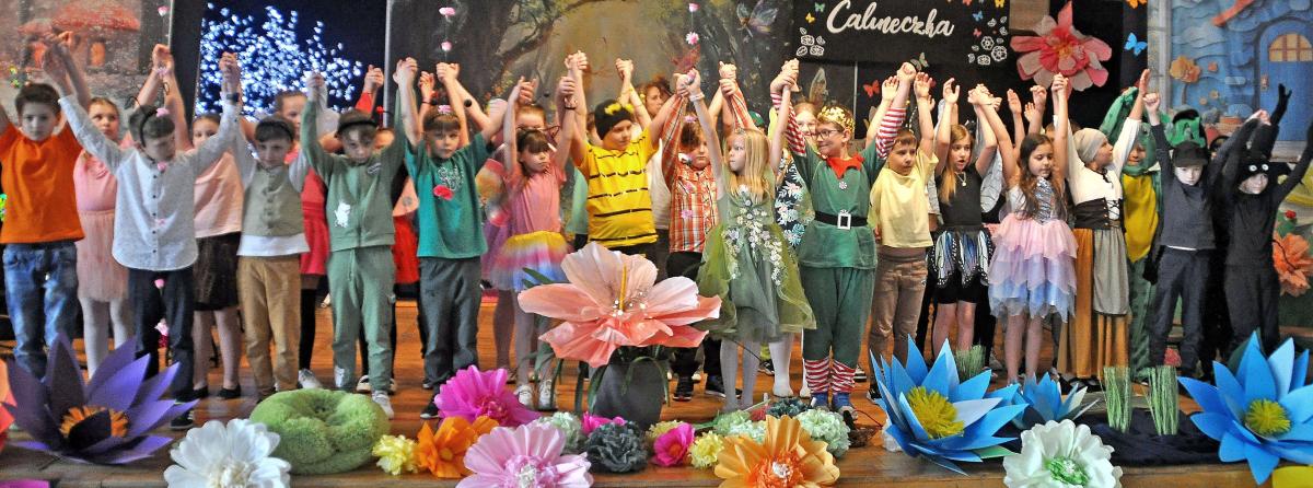 40 uczniów klas IIIb i IIIc SP nr 1 im. Emilii Plater w Końskich wystawiło na szkolnej scenie Calineczkę Andersena. Widzowie oglądali barwną opowieść o maleńkiej bohaterce i jej przygodach w pięciu odsłonach scenografii domu i ogrodu, szuwarów, lasu, norki myszki oraz kwiatowej krainy. Były tańce, piosenki, polonez i gromkie brawa dla młodych aktorów.