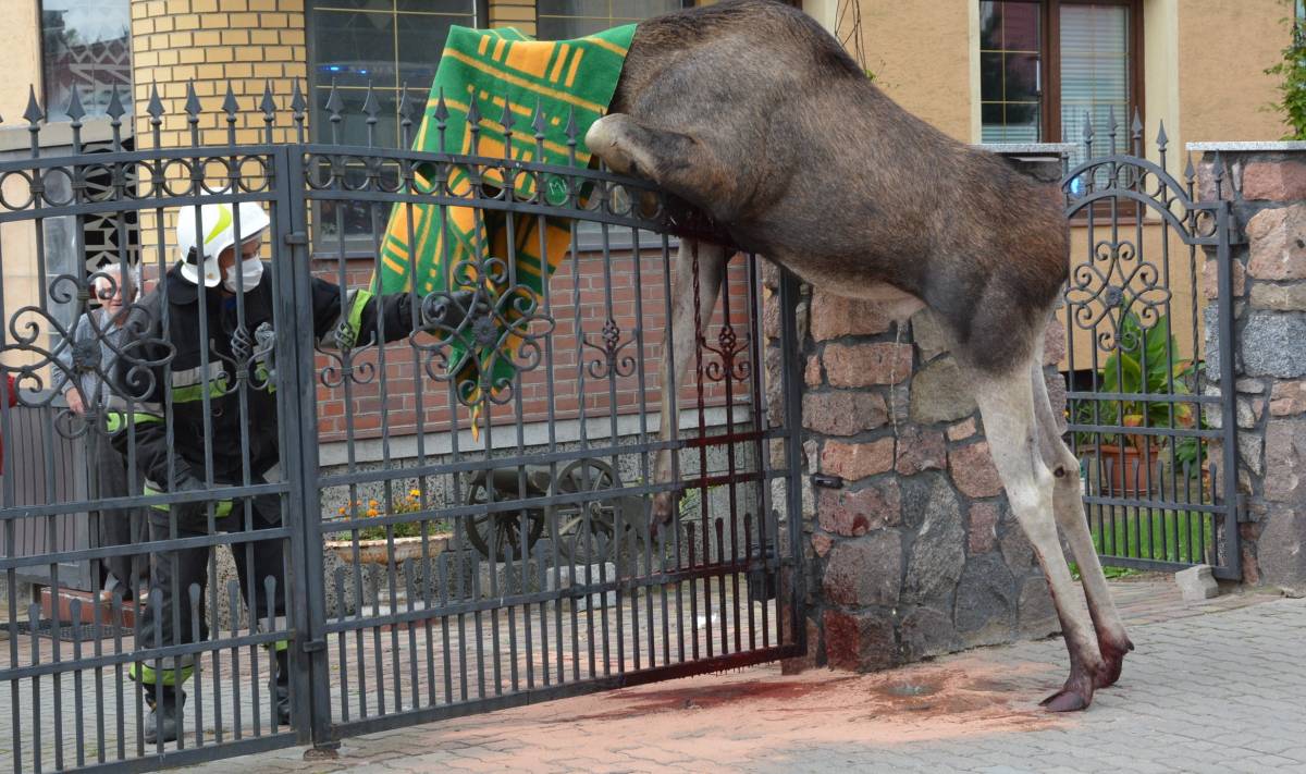 Zdjęcia Makabryczny obrazek. Śmierć łosia na ogrodzeniu posesji [ZDJĘCIA] - fotorelacja
