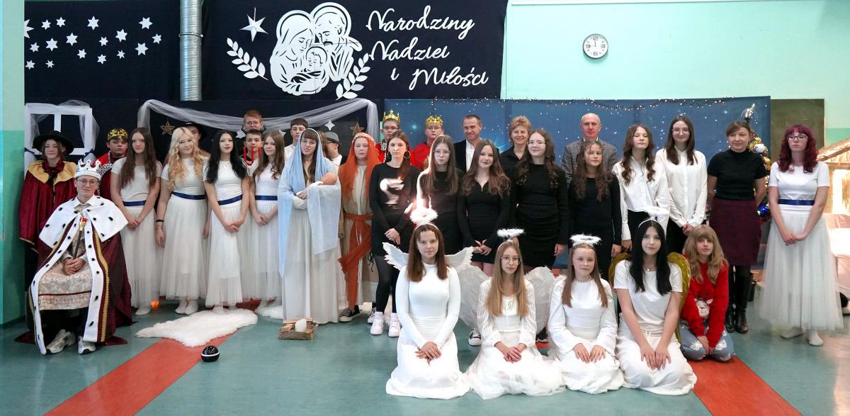 Jasełka bożonarodzeniowe wprowadziły wszystkich w atmosferę Świąt Bożego Narodzenia. Młodsze i starsze klasy, w dwóch budynkach szkolnych, przygotowały wzruszające inscenizacje, układy taneczne i kolędy. Tradycyjna szopka bożonarodzeniowa z Maryją, Józefem i Trzema Królami zachwyciła publiczność. Dyrektor Paweł Skowron oraz opiekunowie - Małgorzata Czarny, Joanna Lisiewicz, Elżbieta Zielińska, ks. Piotr Klepaczewski i Milena Kuta - wspierali uczniów w przygotowaniach.