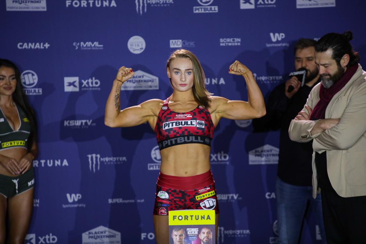 Galeria zdjęć z przebiegu emocjonującej walki Wiktoria Czyżewska vs Adrianna Kreft podczas gali XTB KSW 102 w Radomiu. Zdjęcia ukazują dynamiczne wymiany ciosów, determinację zawodniczek i zwycięską postawę Czyżewskiej. Pojedynek pełen intensywnych momentów, które zadecydowały o jednogłośnym zwycięstwie 20-letniej wojowniczki i jej mocnej pozycji w dywizji muszej. Czyżewska udowodniła, że należy do czołówki swojej kategorii, a galeria obrazuje jej determinację i umiejętności na ringu.