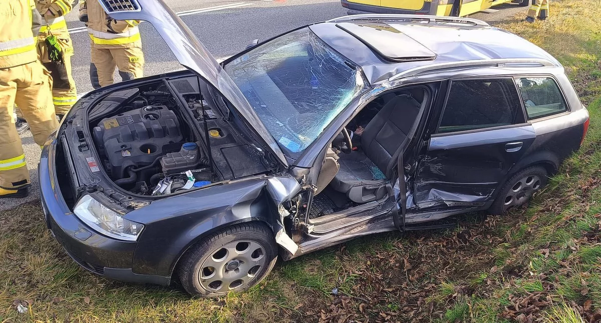 Wypadek w Smykowie. MAN najechał na audi. Kierowca t…
